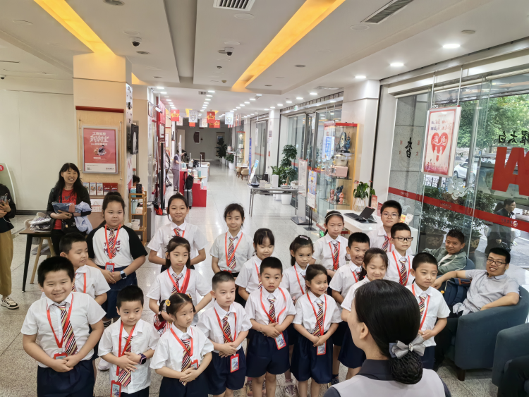 活動開始后,20位“小小銀行家 ”統(tǒng)一更換工裝、佩戴工牌并接受崗前培訓(xùn)。在銀行工作人員的指導(dǎo)和幫助下,他們認(rèn)真練習(xí)了指導(dǎo)顧客、微笑服務(wù)等禮儀,規(guī)范了坐姿、站姿,沉浸式體驗了銀行大廳接待相關(guān)工作。